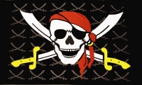 Die Piraten Fahne mit Säbel hat einen doppelt umnähten Rand ist mit 2 Metallösen zum hissen der Fahne ausgestattet und hat eine größe von 90x150 cm.